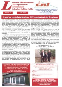 Parution de la Lettre des Administrateurs CNL représentant les locataires à Colombes Habitat Public n°27 du mois de JUIN 2022.